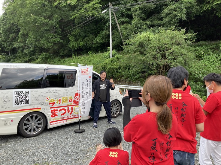 2022年の「今村翔吾のまつり旅」に紀州真田会で応募をしましたところ、真田砦にお越しいただく事ができました。教えてくれたのが紀州真田会メンバーで、当日は今村翔吾さんのファンの方の参加者で賑わいました。
