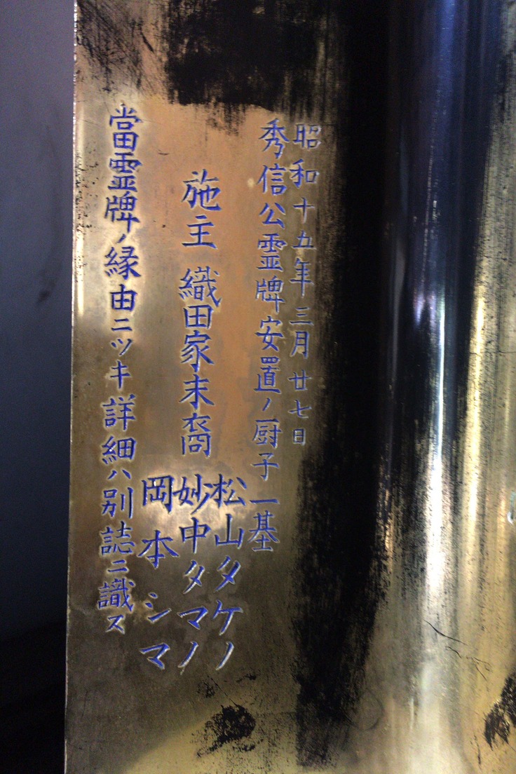 この学文路近くには、織田信長の嫡孫である三法師こと織田秀信終焉の地とされる善福寺跡と、秀信のお墓があります。位牌は住民によって現在も護られています。