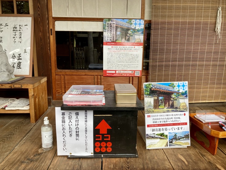 真田庵修繕プロジェクトのクラウドファンディングが公開されてから、九度山・真田ミュージアムおよび真田庵に募金箱を設置していました。