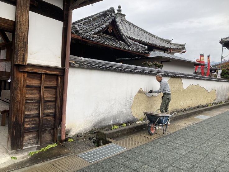 一日でもはやく始めたいと思っていたのですが、寒い冬に土塀の修繕は適していないとアドバイスを受けました。そして、ようやく啓蟄を迎え工事がはじまりました。
