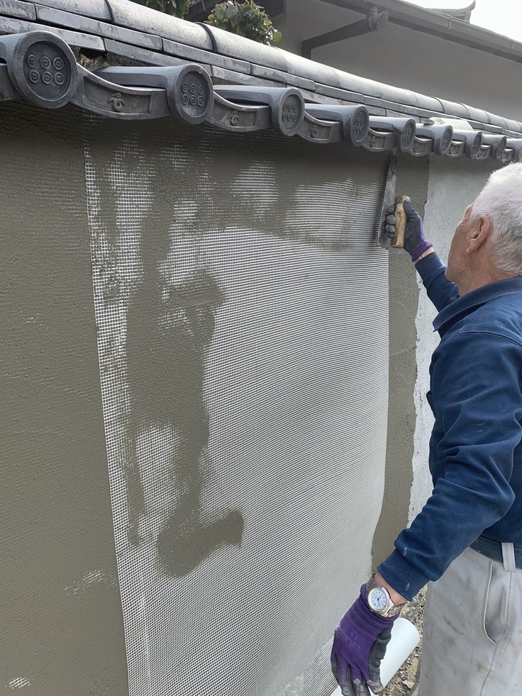 雨の日が続いているなかでも、真田庵の土塀修繕工事は着々と進んでいます。