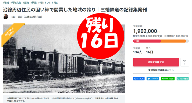あり難い浄財は三蟠鉄道記録集発刊に向けて大切に活用させていただきます。