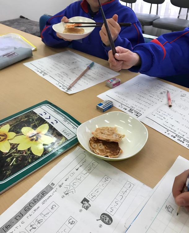 今日のおやつは、地元産の人参と地粉で作った人参せんべい。とてもシンプルなものですが、みんな、超おいしいー!とたくさんおかわりもしてくれました♬