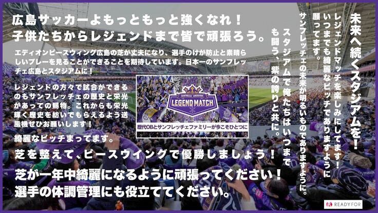 今こそサンフレッチェファミリーの力を最大限結集すべく、クラウドファンディングのページURLをXでシェアしてください!皆さまの想いと共にこのプロジェクトが大きくなりますように!