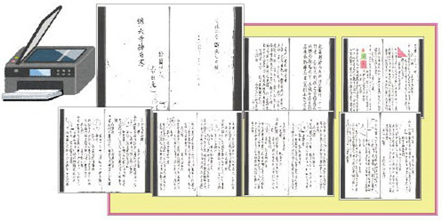 開口神社から入手した『堺大寺繪馬冩』は、上の画像のようにA4版7枚の原典をコピーしたもので。白黒で図版の部分も着色はされていないものでした。11問ある問題は1枚の紙に収まっているものもあれば、2枚にまたがっているものもあります。この紙面をデータ化して、問題ごとの図版とテキストをセットすることにします。