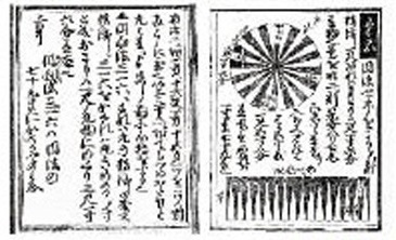 日本独特の数学文化としては、算額があります。江戸期、『計算書』や『塵劫記』に始まり、多くの和算書が出版されました。しかし、出版物の刊行には財力が必要です。財力のない人はどうしたでしょう。一枚の板に自身が挑戦した問題と解答と解答方法を記して、人のたくさん集まるところに掲げました。