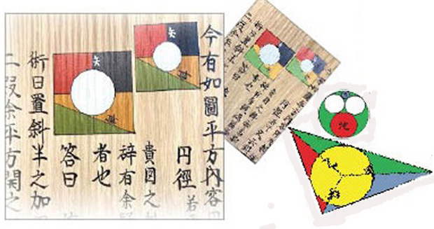 そこに掲げられる和算の問題には、解法のヒントはあるが解答は載っていない。それは江戸時代の和算家吉田光由を起源とする遺題継承(いだいけいしょう)といわれる和算の興味ある知の継承です。彼の著書で答えのない問題を提示し「実力ありと思うものは、これを解いてみよ」との記載があったのが最初でした。遺題を解こうとする学者が研究してその答えを自分の著書に載せます。その後は自分も新たな問題を作成し、自身の著書に掲載して後世に受け継がれていきます。