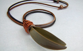 その天然のナギの葉をコーティングしてペンダントにしました。