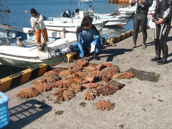 串本ではこれまでにも、いろいろな海を守る活動をやってきています。サンゴを食害するオニヒトデや巻貝の駆除や海底の清掃などです。