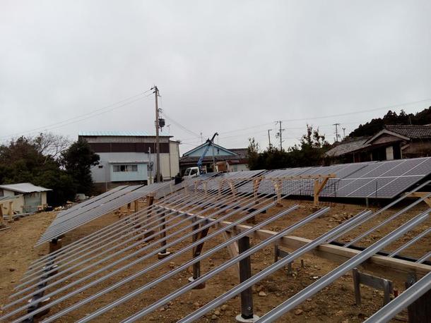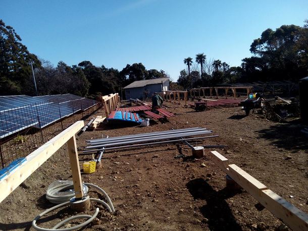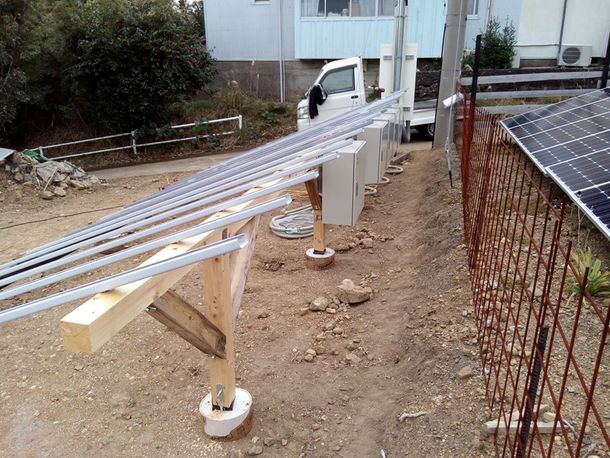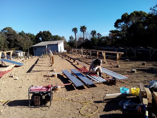 1月中に太陽光パネルを載せる架台の建設を進めました。