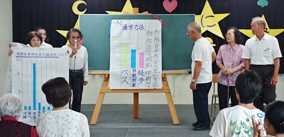 沖縄戦の戦中、戦後の混乱と貧困のため義務教育を受けられなかった方が沖縄には大勢いらっしゃいます。そういう方々のために2004年、夜間中学校を開設しました。義務教育未修了の方の授業料は無料です。今年で丸10年が経ちました。その間生徒の皆さんへの聞き書きを続けています。人数は100名ほどになります。そのことばは学ぶこと、生きることの素晴らしさにあふれています。私たちに自らの人生を見つめる機会を作ってくれる力を持っています。また、証言としても大変貴重なものです。