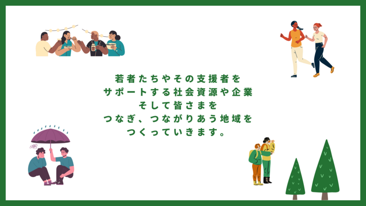 若者たちやその支援者、地域の方々をつなぎ、つながりあう関係性をつくり、各地域の課題解決を目指しています。