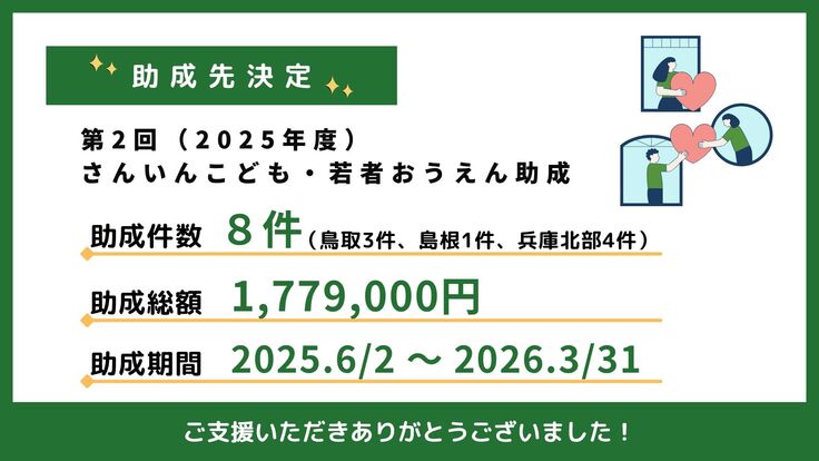 【助成先決定】さんいんこども・若者おうえん助成の支援が始まりました!