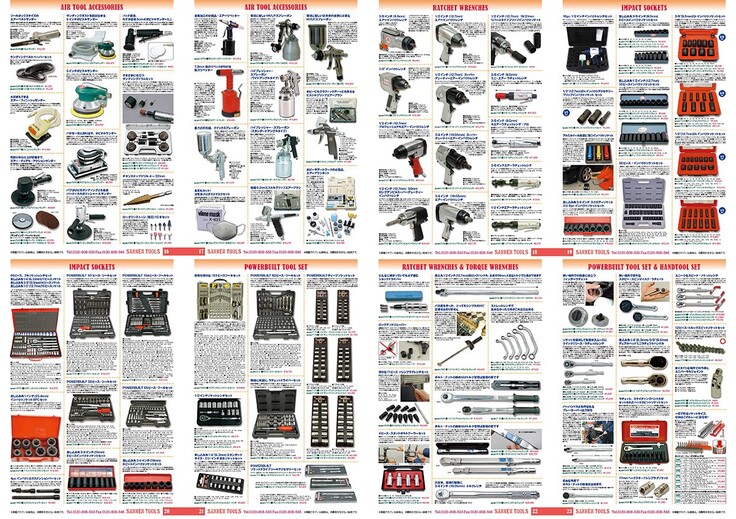 弊社が輸入致します製品は、独自の輸入ネットワークを駆使し、安くて、丈夫で、使い易く便利とゆう条件を規準に選んだ品々です。一本たったの290円のスクリュードライバーから277,070円のエアーオートバイリフト、834,020円のブラストキャビネットまで約2,000以上のアイテムを収録した必見のカタログです。 詳しく丁寧な説明カタログの全ての商品には使い方及び仕様そして特徴、注意事項等について詳しく解説し、また実際に工具を使っている様子を写真で解説し誰にも解るような編集で、新たな工具との出会いを皆様に提供いたしております。 今後サンケンでは2年1冊カタログを発行し、最新の情報と便利で使い易い工具を紹介して行きます。カタログは全ページカラー編集で写真をふんだんに取り入れて一目見れば誰でも解る編集を心がけております。
