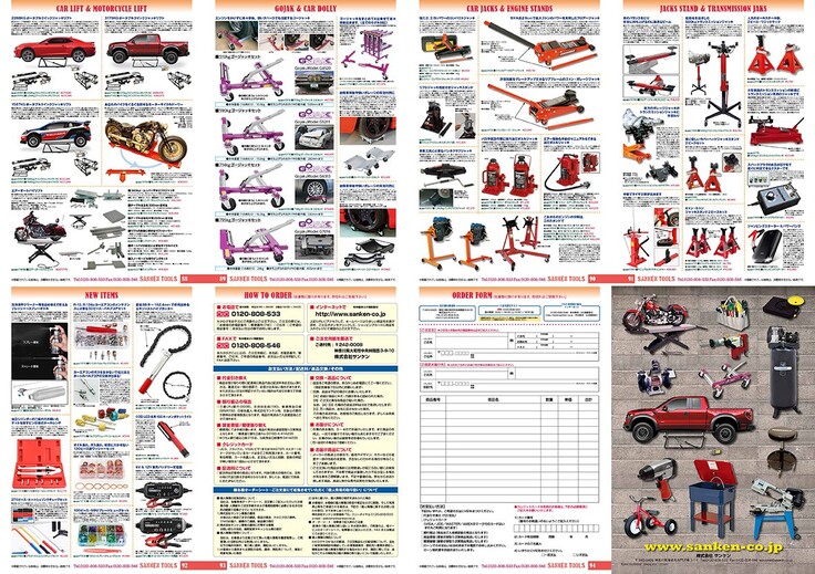 貴方の工場の活性化に必ず役立つ最新の工具輸入と最新の工具の情報の取集に努力して、新たな修理需要のヒントを提案するサンケンのカタログを製作していきます。最新の工具の情報は不況を乗り切る切り札と考えています。