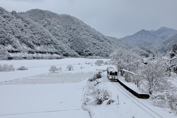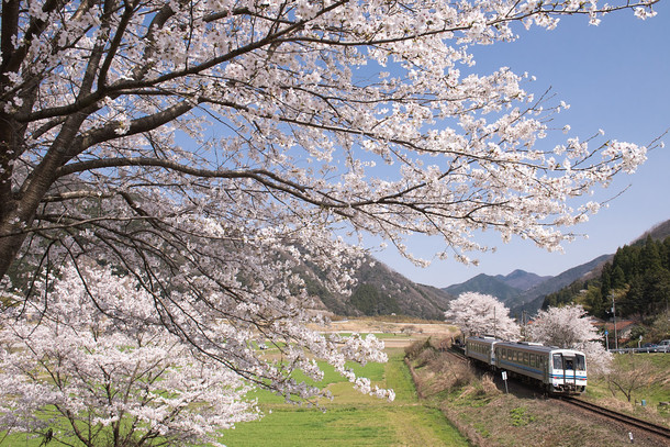 山々や桜など、自然の中にぽつりとたたずむその小さな駅舎とホームは、訪れた鉄道写真家や日本画家に愛されてきました。