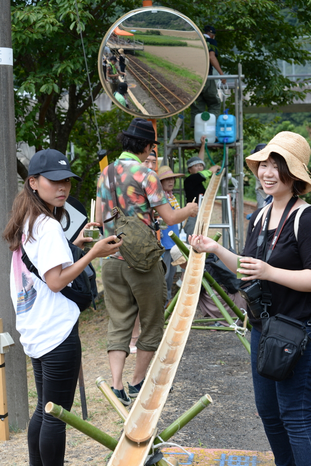 まず、11時から鹿賀駅でのそうめん流しを実施!(樹冠ネットワーク様、ありがとうございました!)