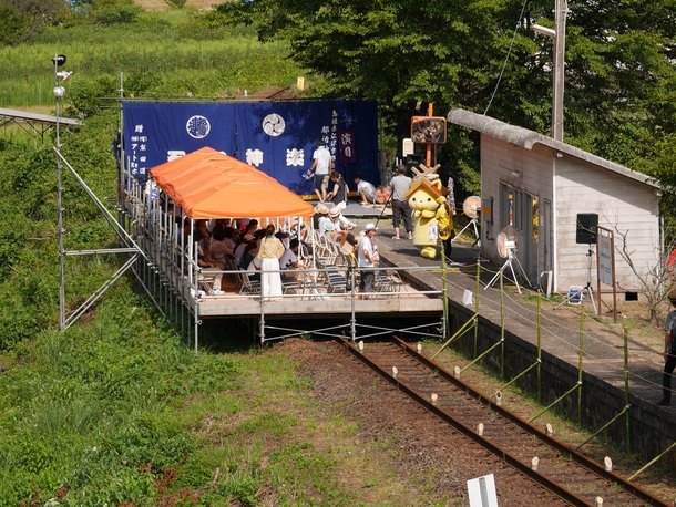 そして15時からまつりが開催!鹿賀駅のホームが、ライブ会場として生まれ変わりました!しまねっこ、ごまハチfeat.D.Naoko様、セカンドカズン様、石見神楽 都治神楽社中様、ことだま様、佐藤卓夫様(エアトレイン世界チャンピオン)、鈴木トオル様の豪華アーティストによるライブを実施いただきました。