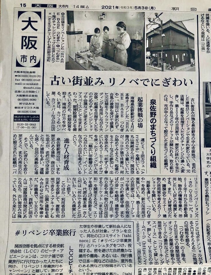 この新聞記事に取り上げていただいたことで、ローカルですが、テレビからも取材も受け、同じ週につむぎやを取り上げていただきました。