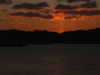画像は2011年3月11日午前6時、宮古市出崎埠頭から重茂半島越しに目撃した太陽柱。今思うとそれは震源地方角から立った不吉な予兆に思えて切なくなります(撮影=高橋政彦)。