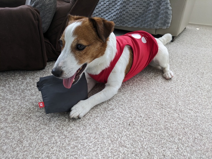買い物に行こうとしたらエコバッグを取られ返してくれない😂留守番が嫌なので…
