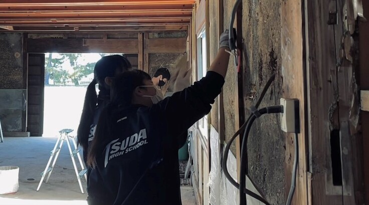 地元の津田高校の高校生と協働した漁業倉庫改修の様子