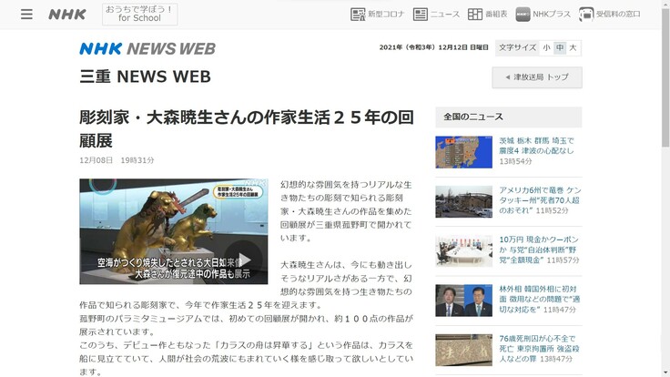 また、NHK三重にて大森暁生展が紹介されました。NHKニュースウェブからその動画がごらんになれます。