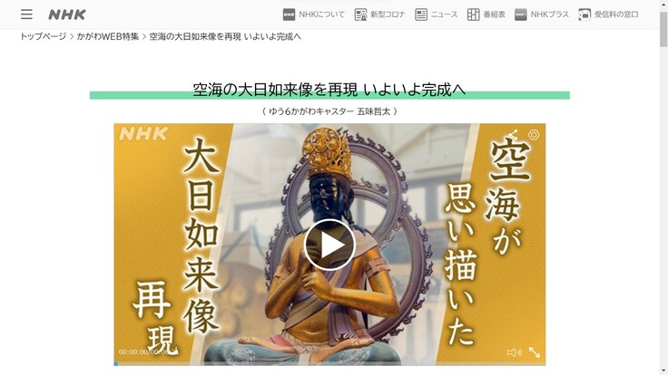 NHK高松放送局の夕方のニュース番組『ゆう6かがわ』にて、当山がご支援者の皆様とともに取り組んでいる「空海の大日如来像再現プロジェクト」について、特集ニュースで報道していただきました。