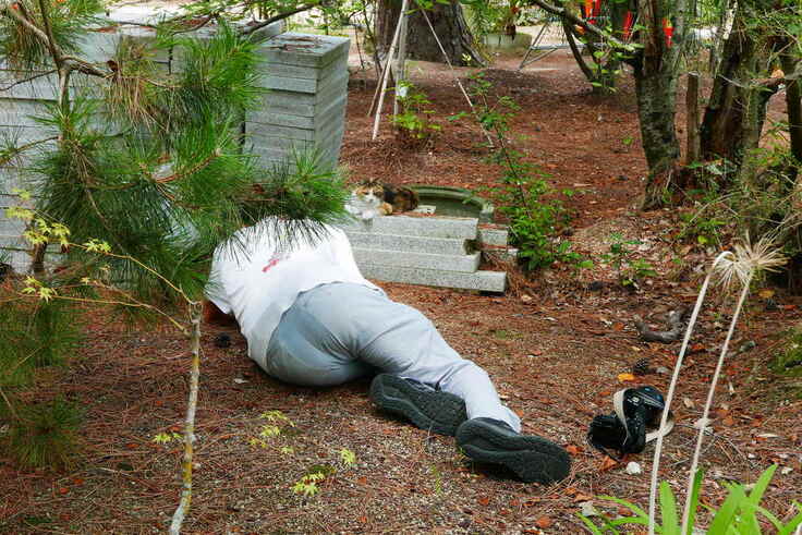 ↑当山の寺猫を撮影する小森カメラマン(約一年前)