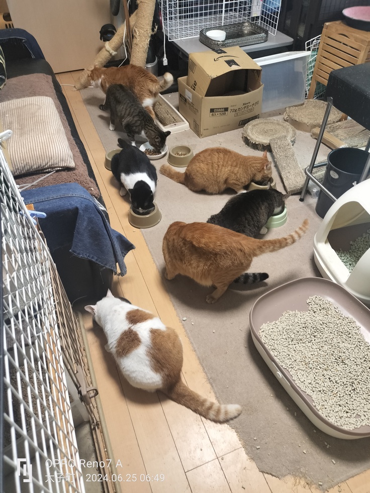 他の保護猫達がフードを食べていても欲しそうにしません。