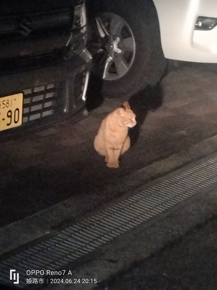 昨夜も茶トラのチャコちゃんの子供に出会いました。この子はまだ未手術です。