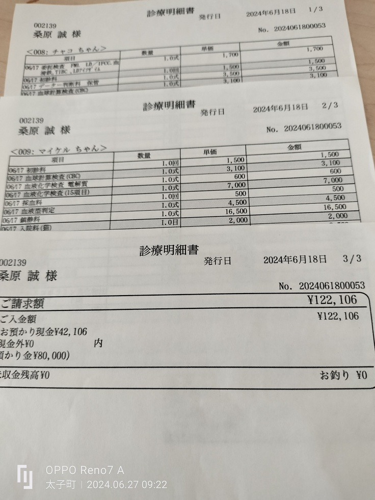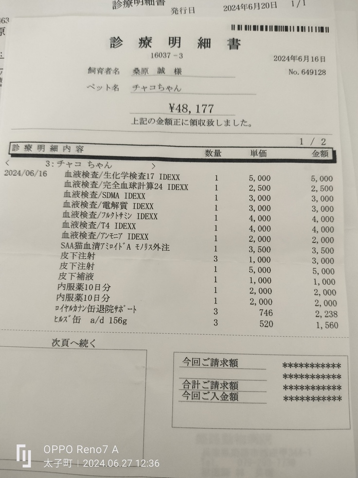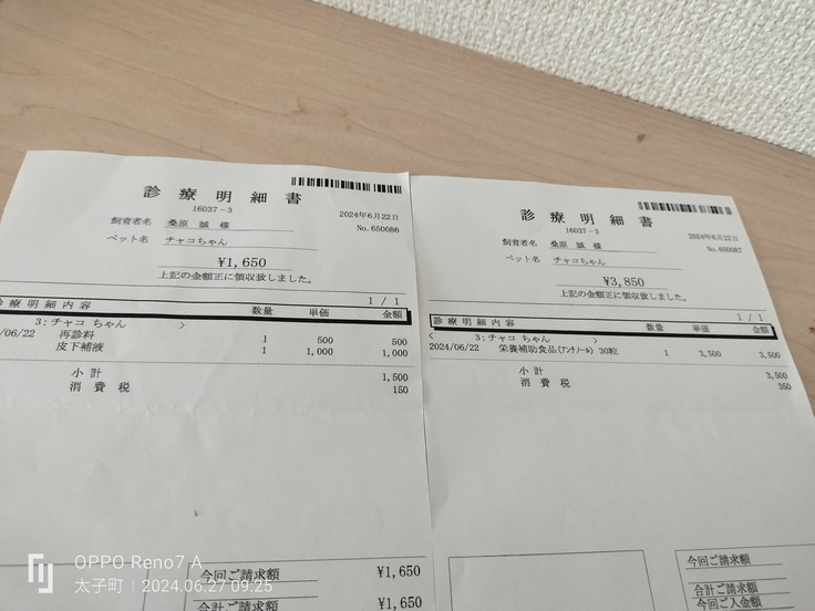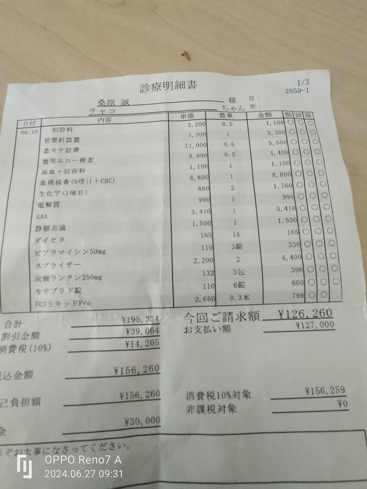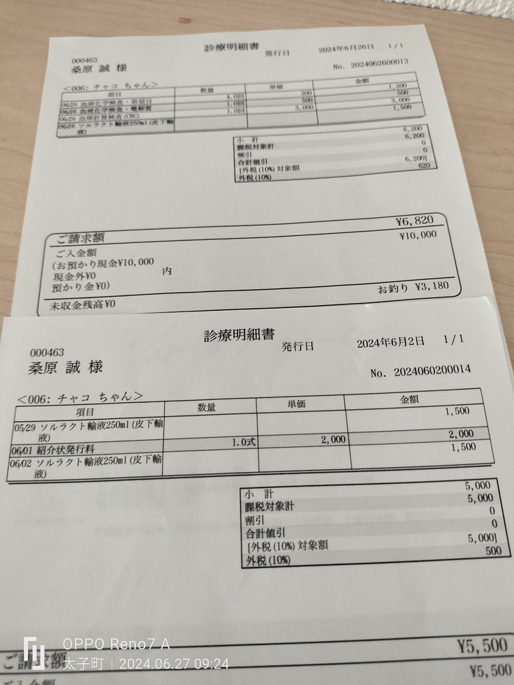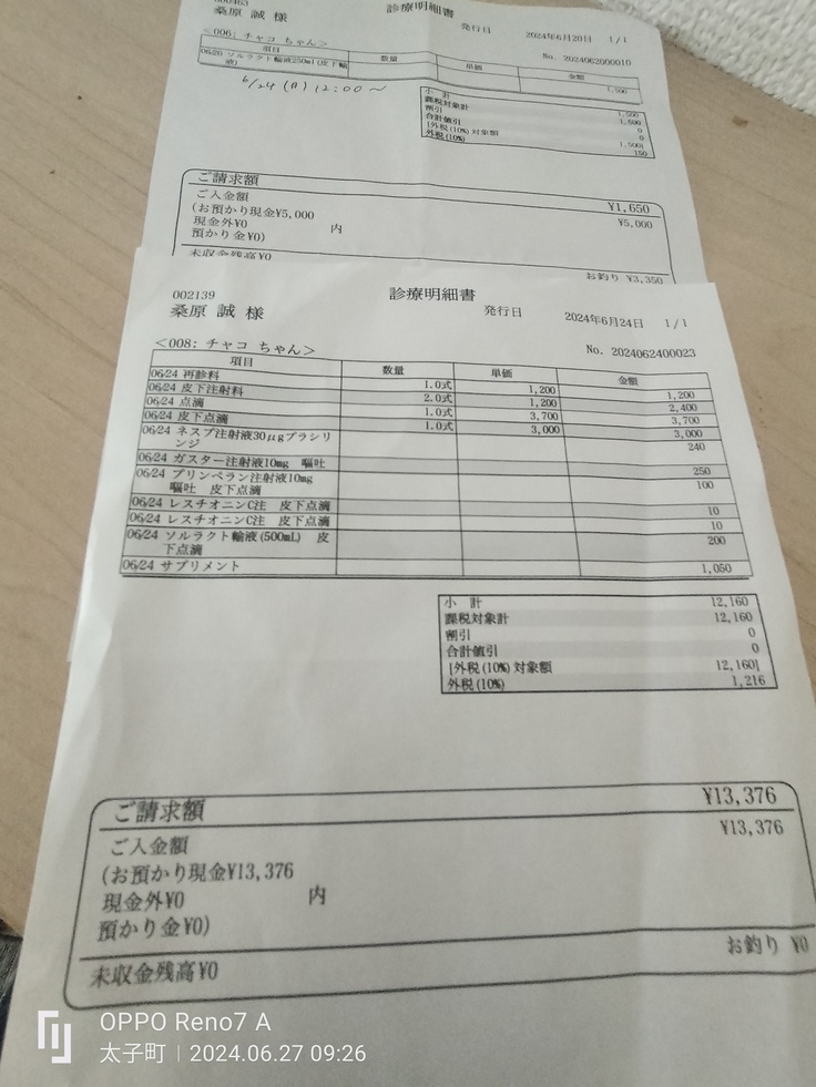 チャコちゃんの6月だけの治療費になります。