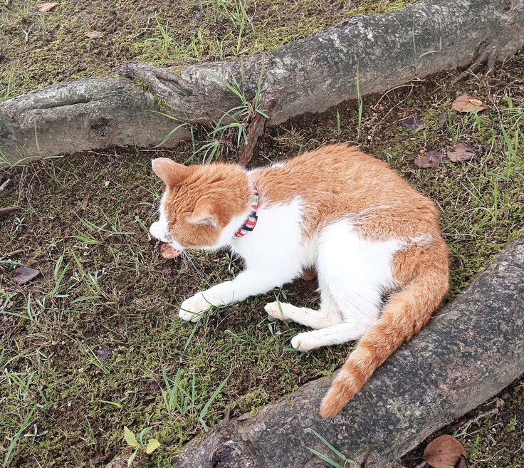 チャコちゃんしっかりと歩きます。桜の木の根っこで久しぶりに爪研ぎをするチャコちゃんを見て最後はチャコちゃんが教えてくれると思い治療も強制自給も継続する事を決めました。