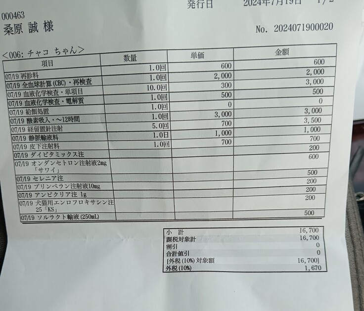 腎臓病ステージ4末期のチャコちゃん極度の貧血で2回目の輸血になりました。