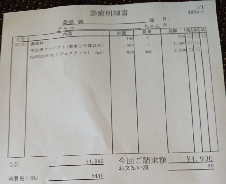 今月だけでチャコちゃんの医療費が20万円を超えてしまいました。