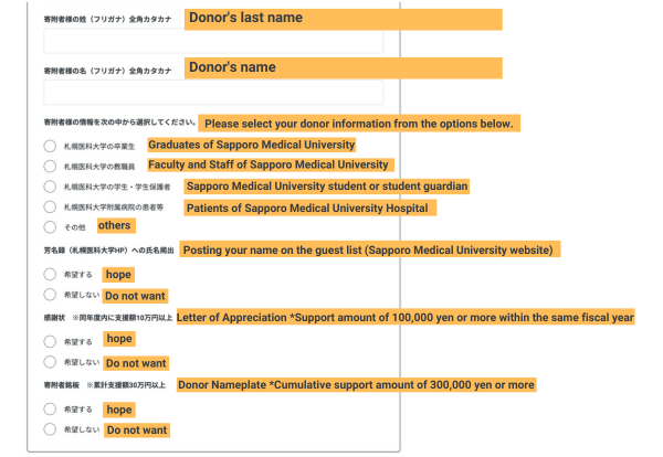 ・芳名録(札幌医科大学HP)への氏名掲出(希望者のみ)