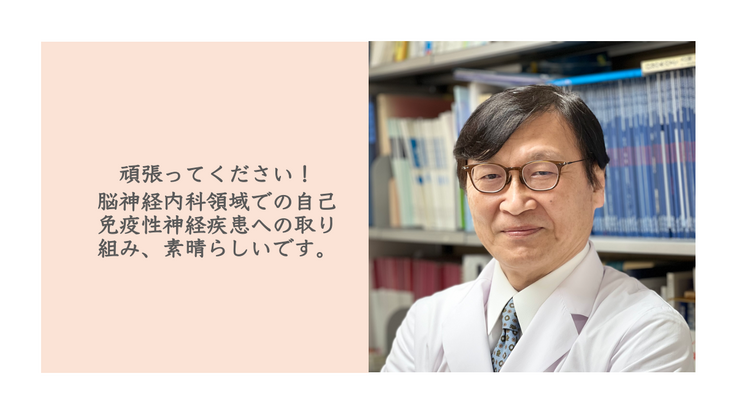 このたび、順天堂大学名誉教授 脳神経内科/リハビリテーション医学 客員教授でいらっしゃる林明人先生からご支援と応援メッセージをいただきました。研修医時代、私は林先生から直接ご指導を賜り、たくさんのことを教えていただきました。この場をお借りして重ねて御礼申し上げます。