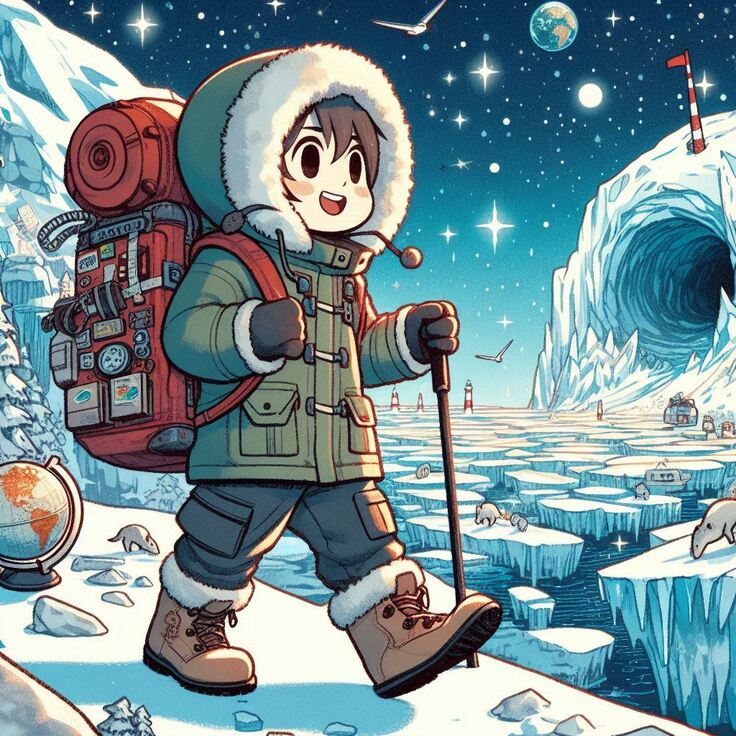 ※AIで作成した「北極を一人だけで冒険する日本人」のイラスト。