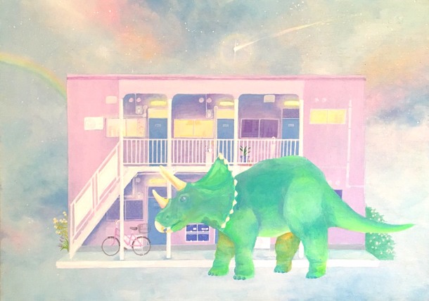動物を中心に、キラキラとした夢の中のような少し不思議な絵をアクリル画で描いています。