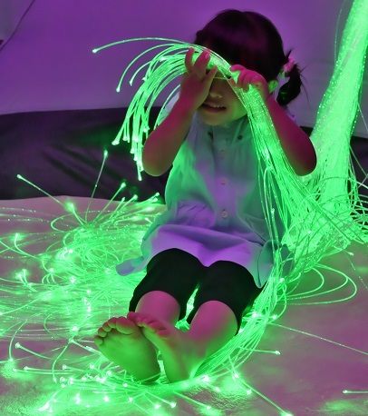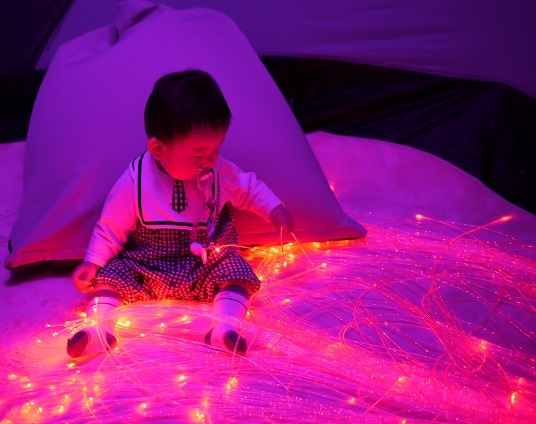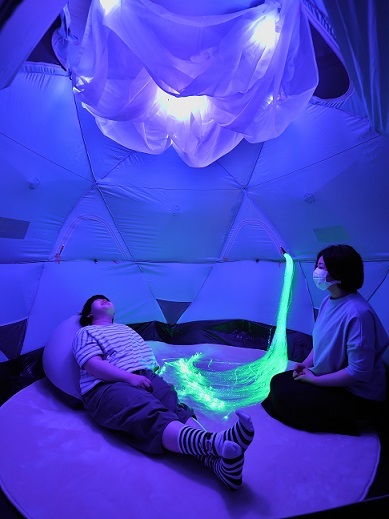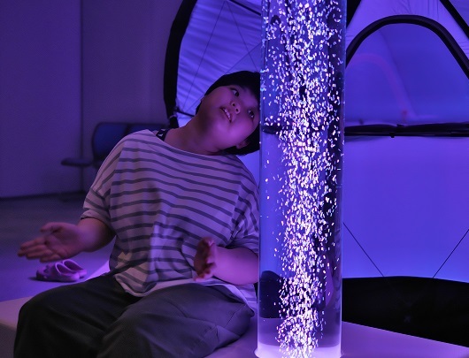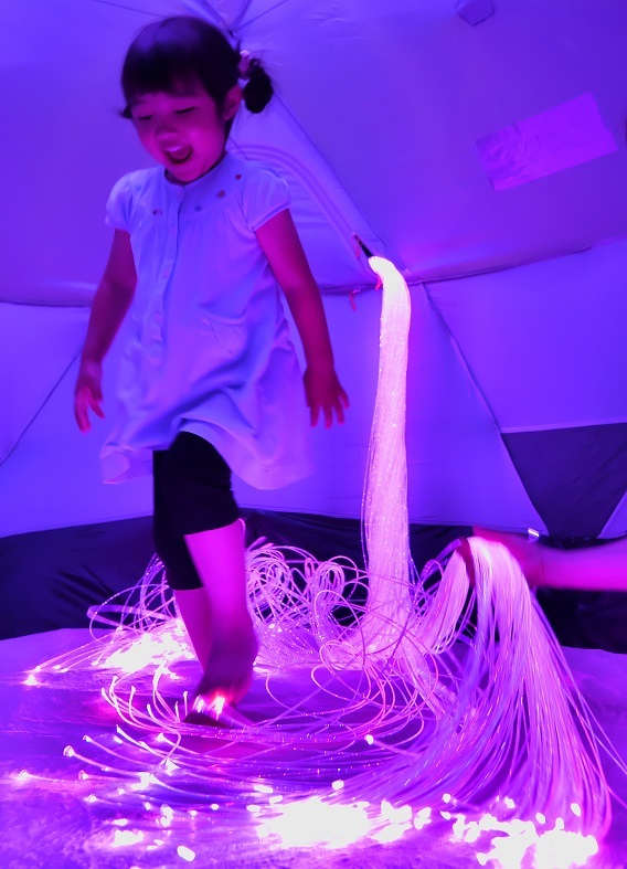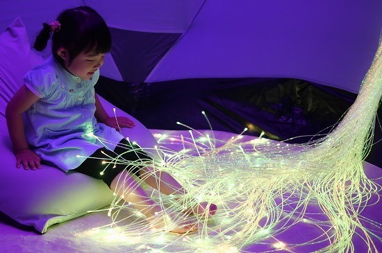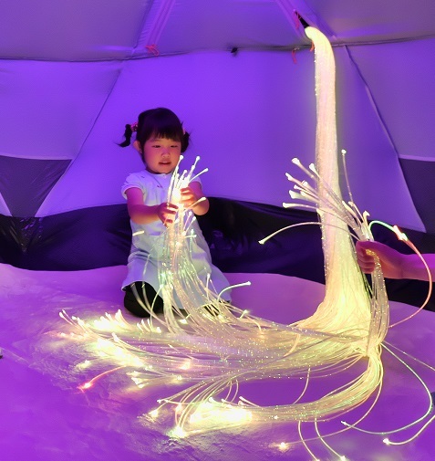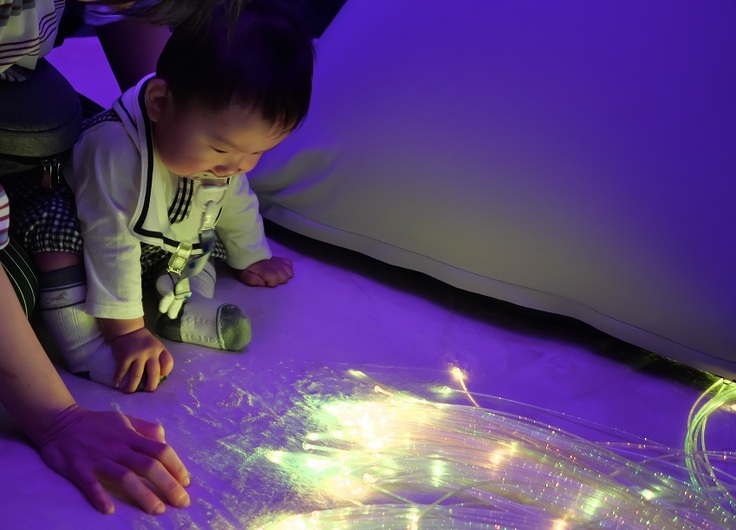 空間にある光ファイバーの明かりが幻想的で、非日常的な感じはとてもリラックスできました。親としては、我が子が喜んでいる姿を見るのはとても嬉しいものです。