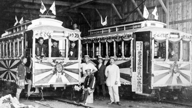 最初の縁が、札幌を初めて走ったこの車両。大正7年(1918)8月に「札幌電気軌道」という会社の経営で開業した路面電車は、車両をイギリスから輸入するはずでした。ところが、第1次世界大戦が勃発してしまい、輸入が不可能に。そこで、名古屋電気鉄道が廃車にしようとしていた古い車両を購入し、無事に開業することができたのです。