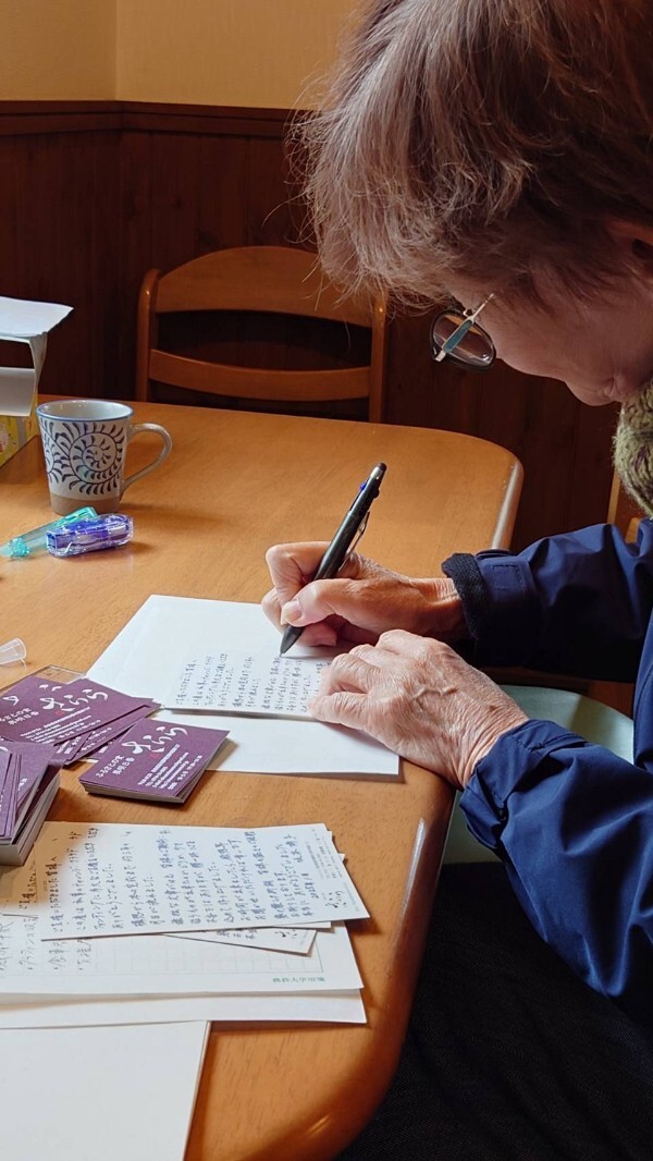 暖かい部屋で、感謝の手紙書いてます。何度も何度もやり直し😆