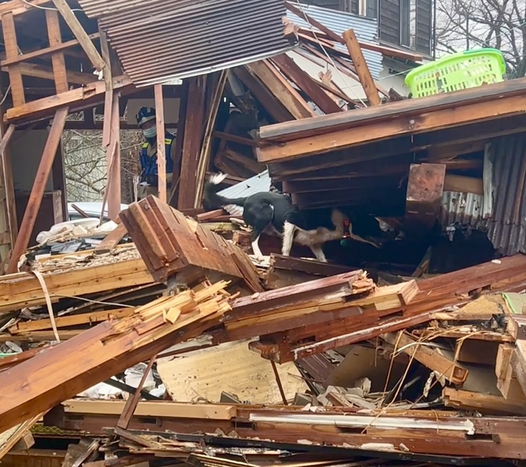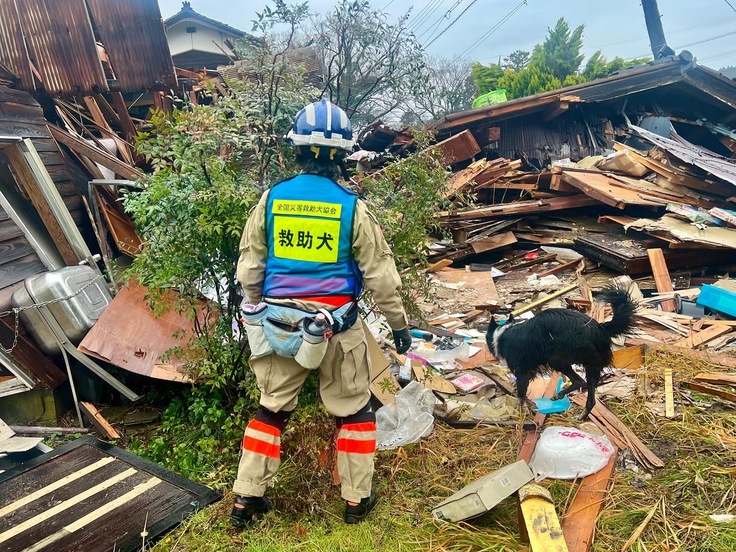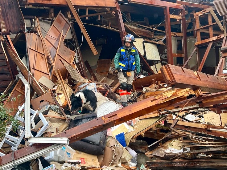 72時間のタイムリミットの中、救助犬たちも命の灯を懸命に探します。