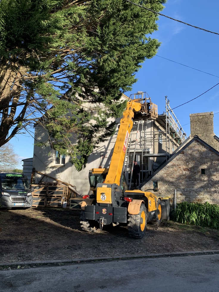 ここブルターニュの冬は毎年10度前後で穏やかなのですが、今年は氷点下や雨、風と厳しい中でも職人さんが合羽を着て作業してくれています。