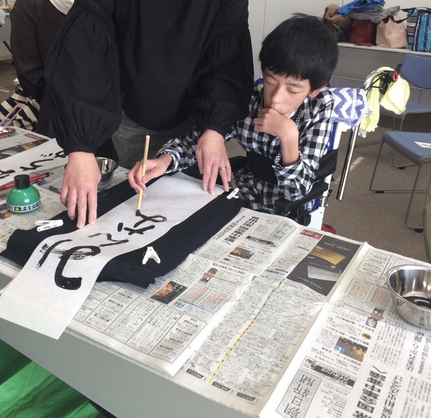 子供たちの中の一人が医療的ケアがありながらも、書道をしています。彼が書いた文字がのったポストカードを1枚お届けします。(写真と同じ文字ではない場合もありますのでご了承ください。)