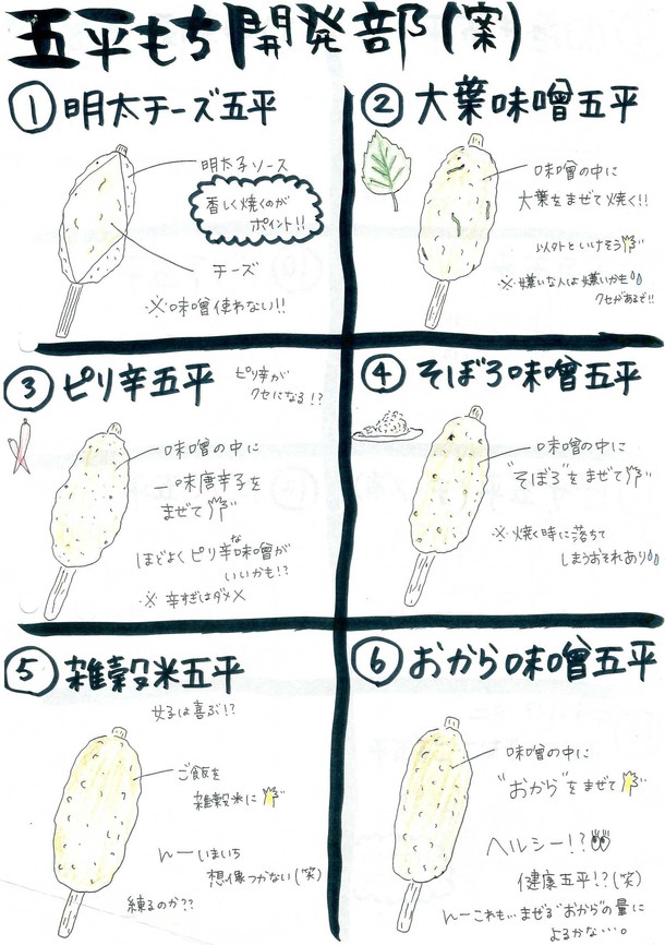 一度食べたら忘れられない五平餅については、五平餅開発部のレポートがでました。アイデアはいいのですが、商品化になるとまだまだ遠いものがあります。
