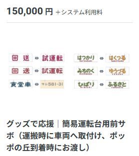 ▶︎<150,000円のコース>グッズで応援|簡易運転台用前サボ(運搬時に車両へ取付け、ポッポの丘到着時にお渡し)をご支援されたい方は、【こちら】をクリックいただくか、下記の画像をクリックすることで、該当のリターンの支援に移動します。
