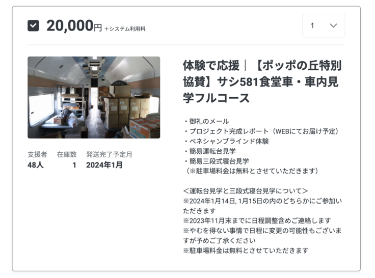貴重な体験コースも含まれておりますので、この機会にぜひご支援・応援をいただけると嬉しいです。
