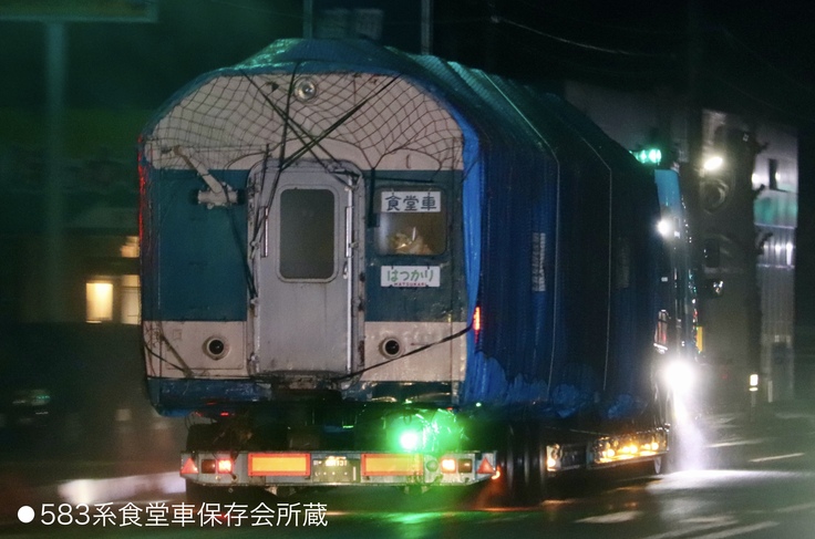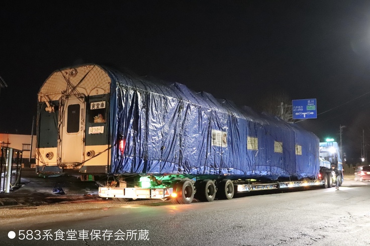 昨日3月17日(日曜日)、583系サシ581−31電車食堂車が、長年保存されていた八戸を出発しました。