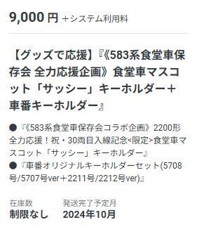 ★【グッズで応援】『《583系食堂車保存会 全力応援企画》食堂車マスコット「サッシー」キーホルダー+車番キーホルダー』
